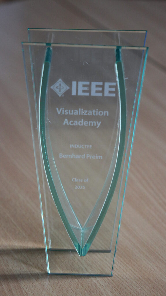 At this year’s IEEE Visualization Conference in Vienna, Bernhard Preim was inducted into the IEEE Vis Academy, which describes itself as a “prestigious academy that recognizes the achievements of leading figures in the field.” Among the five new members of the IEEE Vis Academy are two professors of visualization from the University of Magdeburg: Bernhard Preim and Holger Theisel.